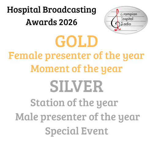 Grampian Hospital Radio broadcasts to Aberdeen Royal Infirmary, Aberdeen Maternity Hospital and Roxburghe House via bedside units and online, app and smart speaker to everywhere else.